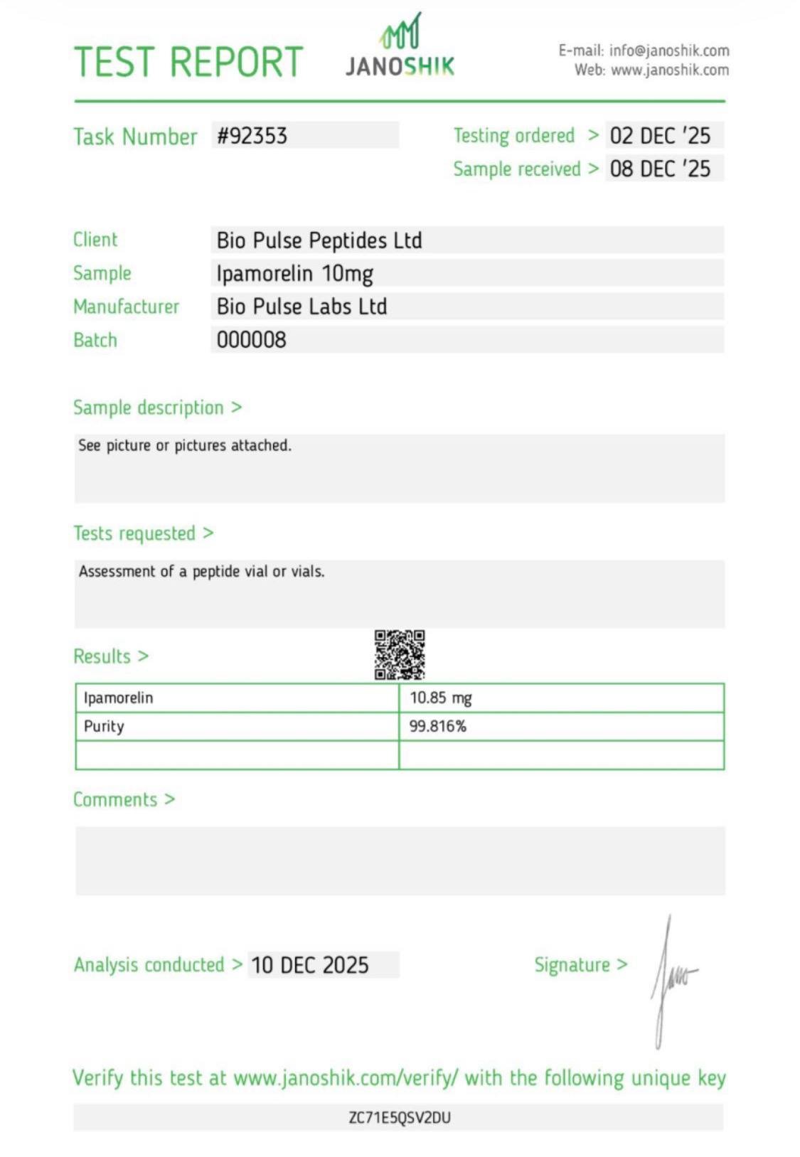 Bio Pulse Peptides supplies materials strictly for laboratory research. Products are not medications, foods, supplements, or cosmetics; not for human or veterinary use. By purchasing, you confirm you are a qualified researcher and will handle the material in line with your institution’s policies and applicable laws.