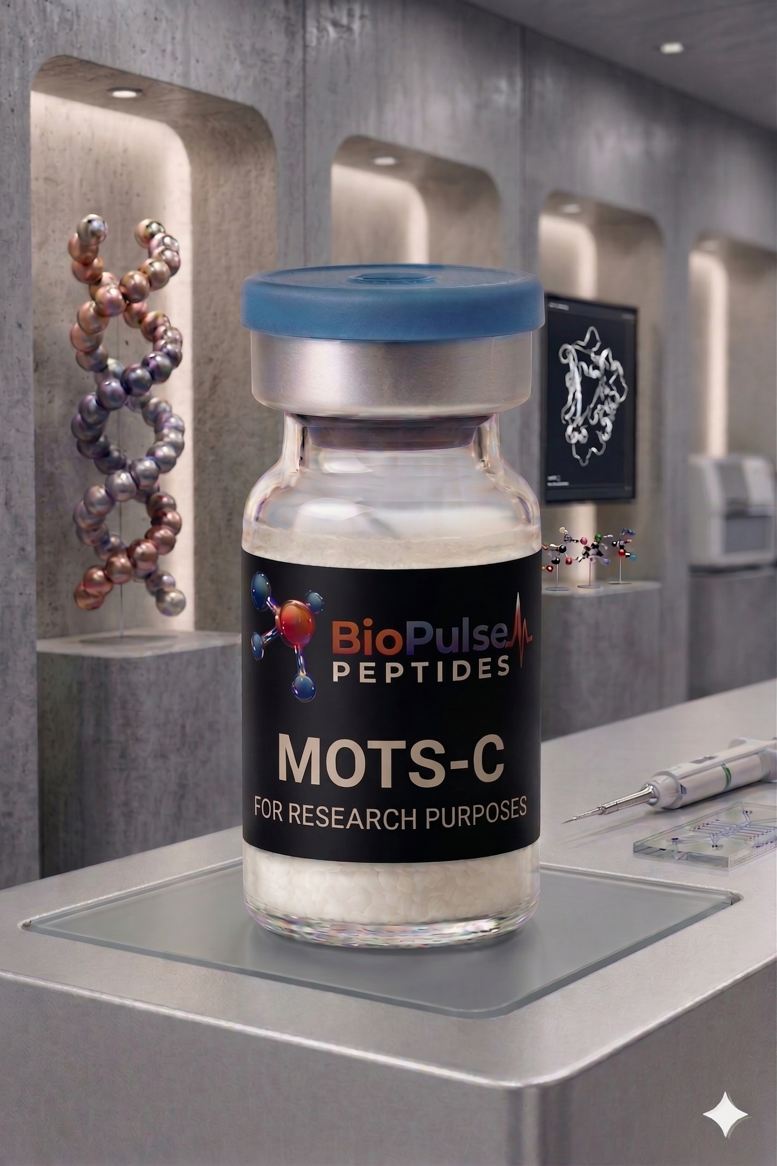 MOTS-c is a mitochondria-encoded research peptide used in controlled in-vitro studies of cellular metabolism, stress-response signalling, and mitochondrial bioenergetics under non-clinical conditions.