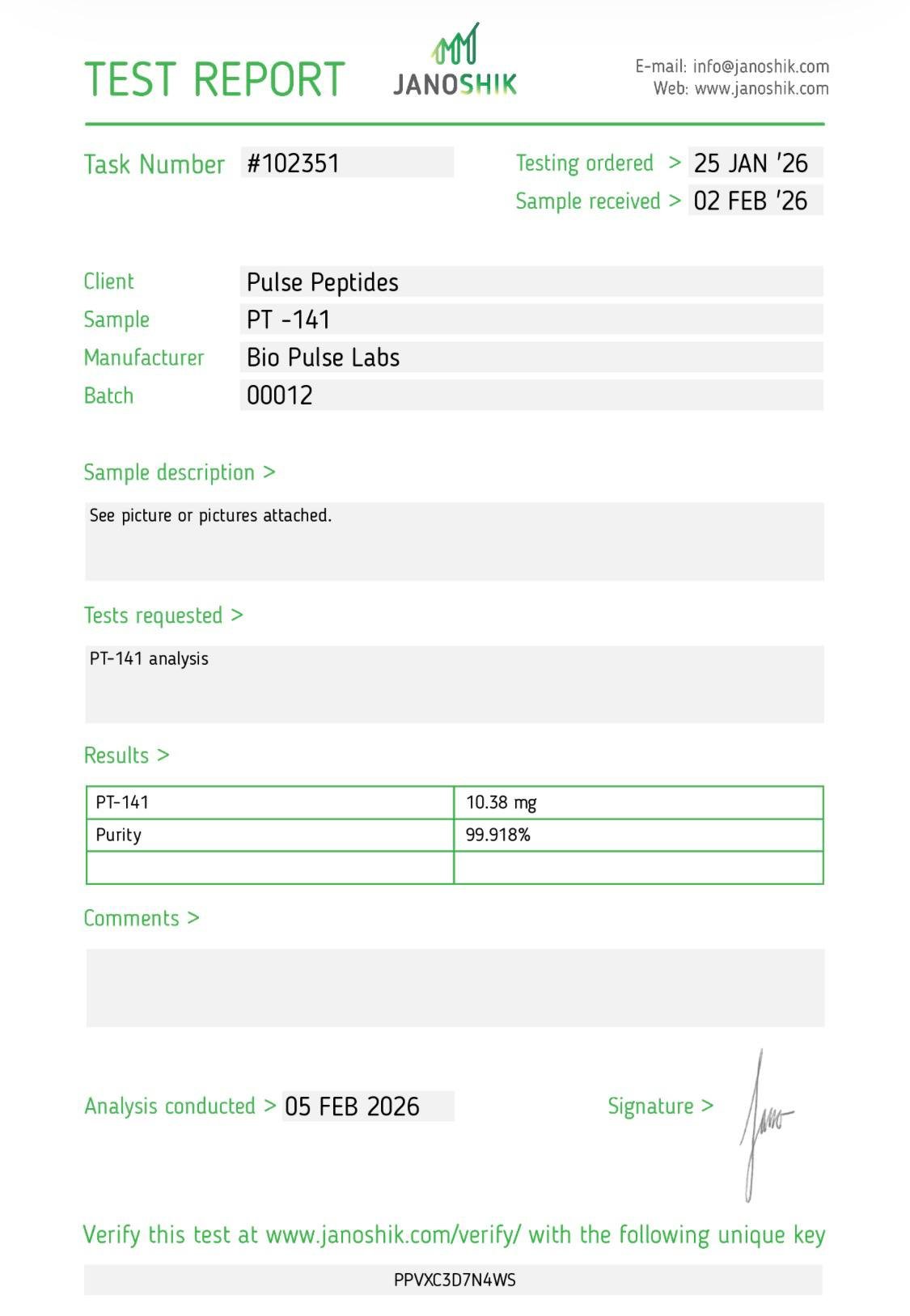PT-141 is a synthetic melanocortin receptor agonist peptide for controlled in-vitro studies of neuropeptide and receptor-signalling pathways.