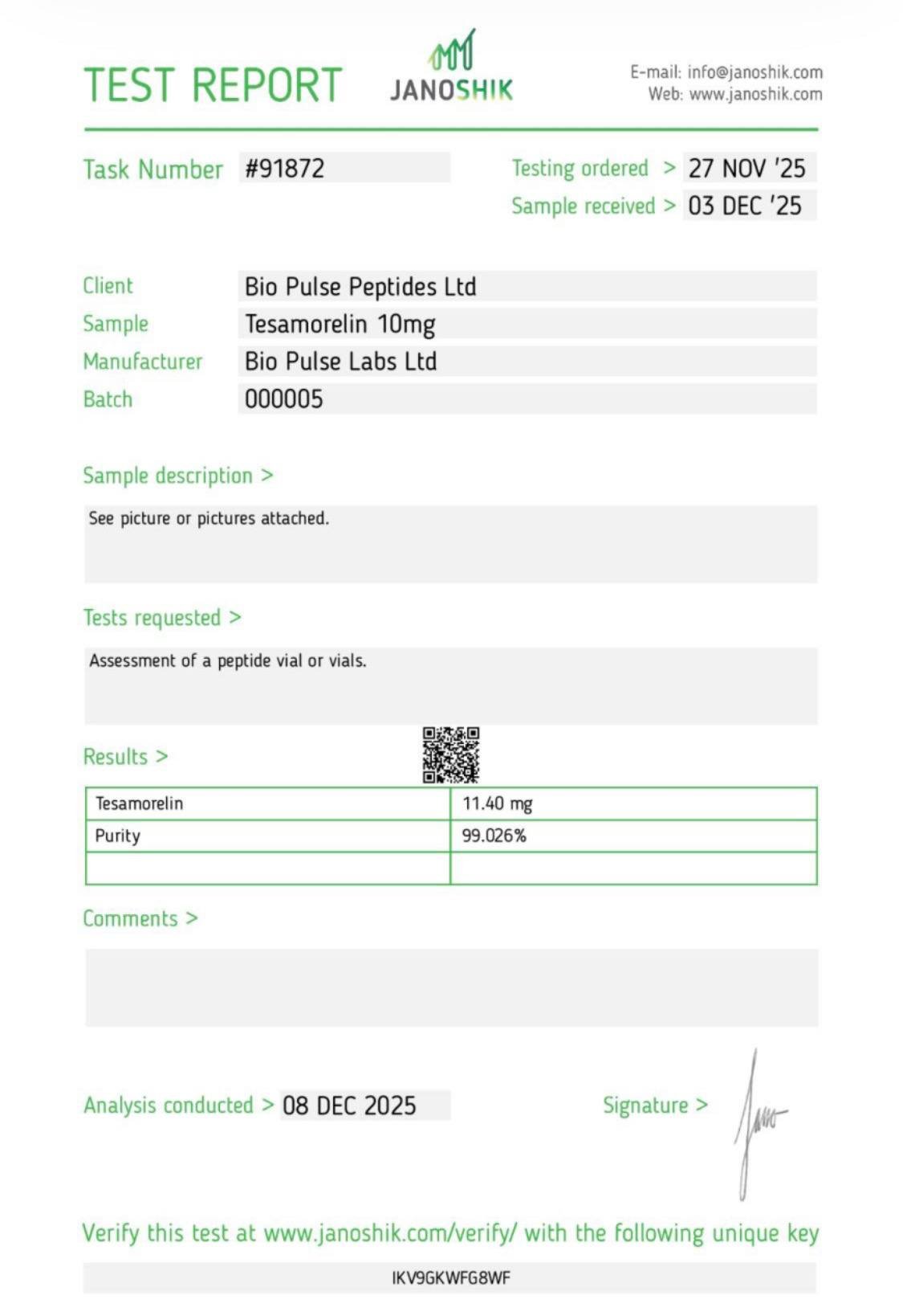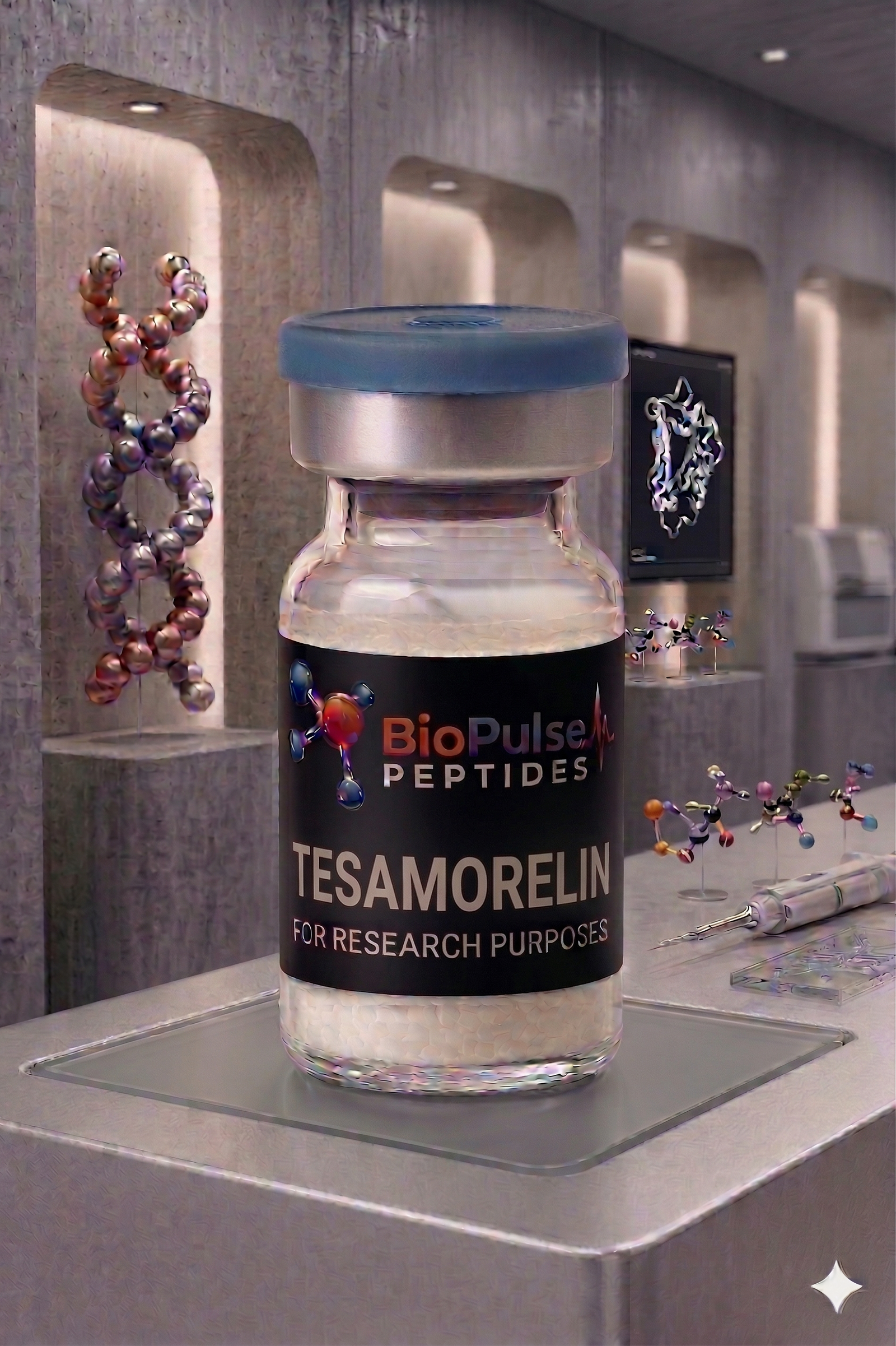 Tesamorelin is a synthetic analogue of Growth Hormone–Releasing Hormone (GHRH), consisting of 44 amino acids, that stimulates endogenous growth hormone production. In non-clinical laboratory settings, it is used in controlled in vitro studies to investigate GHRH receptor signalling, cAMP/PKA pathways, and growth hormone axis models. For research purposes, it is commonly dosed at 6mg.
